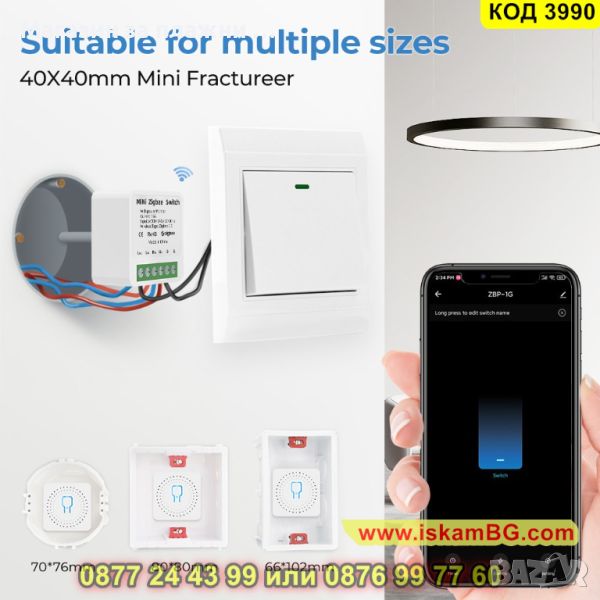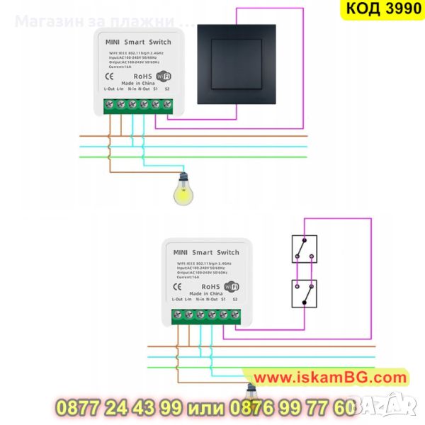 WiFi смарт модулът има малки размери, което го прави лесен за монтиране в кутията или в държача на лампата. Характеристиките, които това мини устройство притежава позволяват да го използвате по най - различни начини. Можете да трансформирате стандартните ключове за включване/изключване или контакти в смарт устройство, управлявано от вашия смартфон!