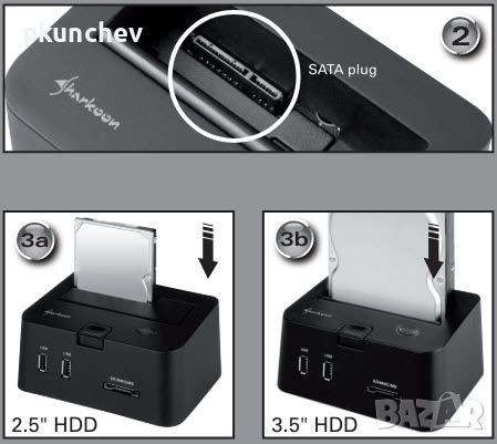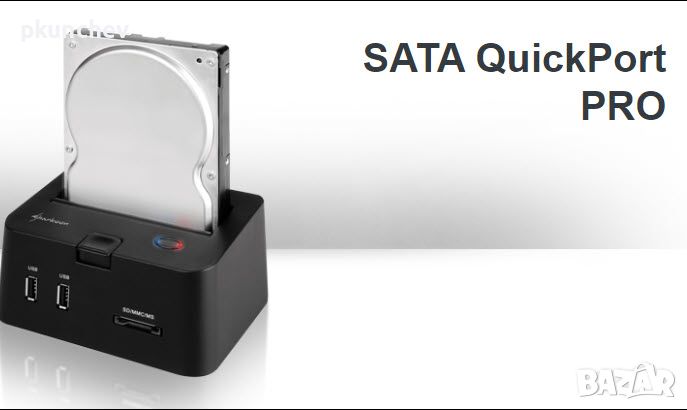 Докинг станция за харддиск Sharkoon SATA QuickPort Pro 2.5"&3.5"USB 2.0 & eSATASATA QuickPort PRO се свързва към компютри, използвайки USB2.0 или значително по-бърз eSATA интерфейс.Разчитайте само на най-интелигентното решение, нашия SATA QuickPort PRO ...В допълнение към способността си да свързва всеки SATA HDD (2,5" и 3,5") без времеемка инсталация, SATA QuickPort PRO предлага също 2 USB порта и четец на карти, който поддържа форматите SD, SDHC и MMC/MS.