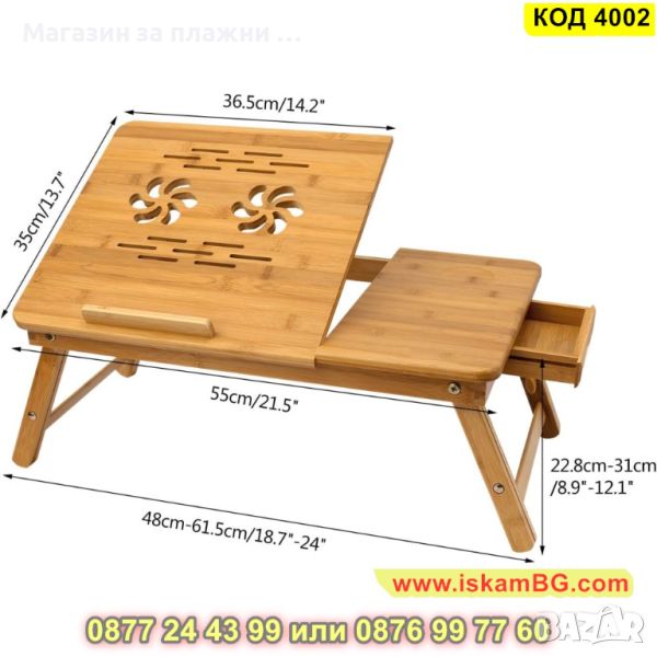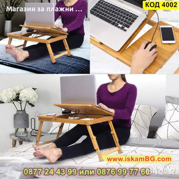 Оптимизирайте вашето работно пространство с нашата бамбукова масичка за лаптоп, съчетаваща функционалност и елегантен дизайн.