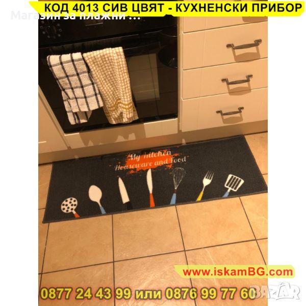 Пътека за кухня от 2 части - Модел КУХНЕНСКИ ПРИБОРИ - 4013 СИВ ЦВЯТ - КУХНЕНСКИ ПРИБОР