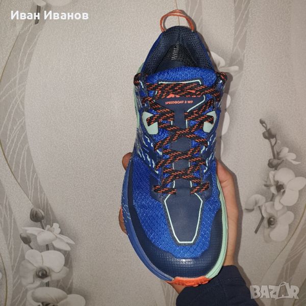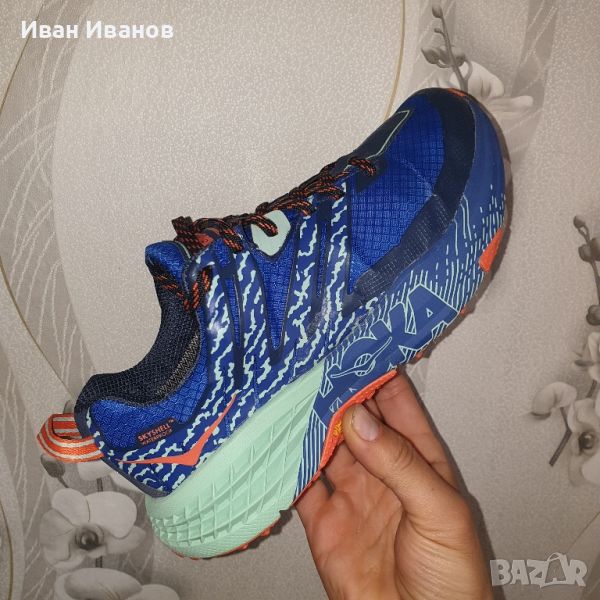 Hoka One One Speedgoat 3 вече има тази водоустойчива версия с водоустойчива обувка SKYSHELL™ и език с накрайници . Предпочитаното оръжие за легендата за бягане по пътека Карл Мелцер, известен още като "Бързият козел", който държи рекорда за най-много победи в състезание на пътека на 100 мили. Проектиран да атакува всякакви технически пътеки, 2019 Speedgoat 3 се справя с лекота с широк диапазон от условия; от хълмиста, единична пътека на ниска надморска височина до много предизвикателен алпийски терен на голяма надморска височина.По-широката междинна подметка и кутията за пръстите бяха оценени от бегачите, както и по-агресивните уши Vibram® MegagGrip, които издържат на всякакъв вид неравен терен - версия 3 поддържа тези добре приети характеристики. Speedgoat 3 има добавена опора за петата и заключване на средната част на стъпалото в горната част, както и опора за „предпазен колан“ от всяка страна . Това е комбинация, която създава защитна люлка, което прави Hoka One One Speedgoat 3 бърза, здрава и издръжлива обувка за бягане по пътека; и вероятно най-добрата обувка за ултра дистанция.Вдъхновена от Карл Мелцер, известен още като „The Speedgoat“, който държи рекорда за най-много победи в състезания на 100 мили и олицетворява нагласата „отидете навсякъде, бягайте всичко“, тази обувка е проектирана да атакува всички видове технични пътеки. В тази водоустойчива версия сме добавили водоустойчива обувка SKYSHELL™ и език с клинове. По-широката междинна подметка и пръстите на Speedgoat 2 бяха добре приети, както и по-агресивните уши Vibram® Megagrip, които издържат на всякакъв вид неравен терен. Със Speedgoat 3 добавихме допълнителна опора за петата и заключване в средата на стъпалото в горната част, както и опора за „предпазен колан“ от всяка страна. Това е комбинация, която създава защитна люлка. Покрити с шарена горна част от найлон Ripstop, ние смятаме, че наистина сме в крак с философията на Speedgoat „отидете навсякъде, управлявайте всичко“.Характеристика:Повърхност: пътекаВодоустойчива Skyshell мембранаОтворена мрежеста конструкция за максимална дишаемост и опораTPU подсилвания в централната част за сигурно приляганеГорна конструкция за стабилност и сигурно приляганеГоляма EVA междинна подметка за леко омекотяванеГоляма подметка за стабилна основа върху неравен теренМеждинна подметка от пяна CMEVA за абсорбиране на удариВисоко сцепление Vibram Megagrip 5 мм външна подметкаМногопосочни уши за превъзходно сцеплениеПодметка, предназначена за дълги бяганияПредна част на стъпалото: 27 ммТок: 32 ммПадане: 4 ммТегло: 272гр