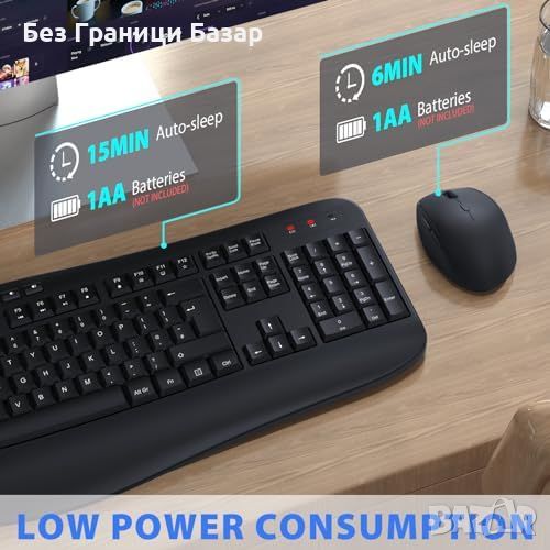 Пълен размер клавиатура с 1xAA батерия и мишка с 1xAA батерия (батерии не са включени).