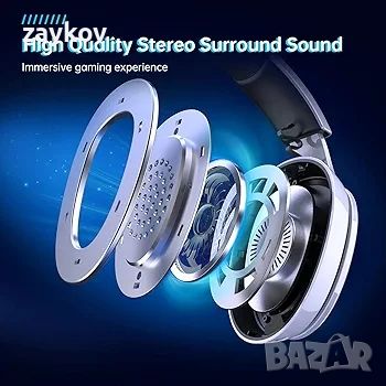Ергономичен дизайн и дълъг живот на батерията: безжични слушалки Gtheos за дизайн на превключвател, подплатени и регулируеми ленти за глава, не само подходящи за намаляване на натиска на главата, но и подходящи за различни форми на главата. Ушите са изцяло покрити от меки и дишащи мемори протеинови наушници, които ефективно изолират шумовете и позволяват дълги игрални сесии без умора. Тази слушалка PS5 има устойчиво време за игра от 35-40 часа. С включен хладен RGB светлинен ефект (15-20 часа). Пълно презареждане само за 3 часа.