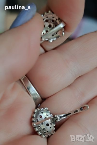 Сребърни обеци - цветя. Цената е крайна 119,99лв / 60 евро. Обеци със по седем на брой спесартин гранати и марказити с ефект на черен диамант! Имат сигурно закопчаване с английски клипс и отличен клик, маркирани, серифицирани. Прекрасни са, спират дъха като се гледат и камерата не може да улови красотата на бижуто! Слагани са веднъж за фотосесия на повод, нови и са подходящи за подарък. Мащабирането е на дланта, не се продават на грамаж! Моля, разгледайте и другите обяви и последвайте профила. Приятно разглеждане. Може да създадете пакет и да използвате доставката, тогава ще направя МАЛКА отстъпка от общата цена. При единична поръчка, цената не се коментира по никакъв начин, продажбата е с благотворителна цел! За лечение! Благодаря за вниманието и отделеното време 🙂
