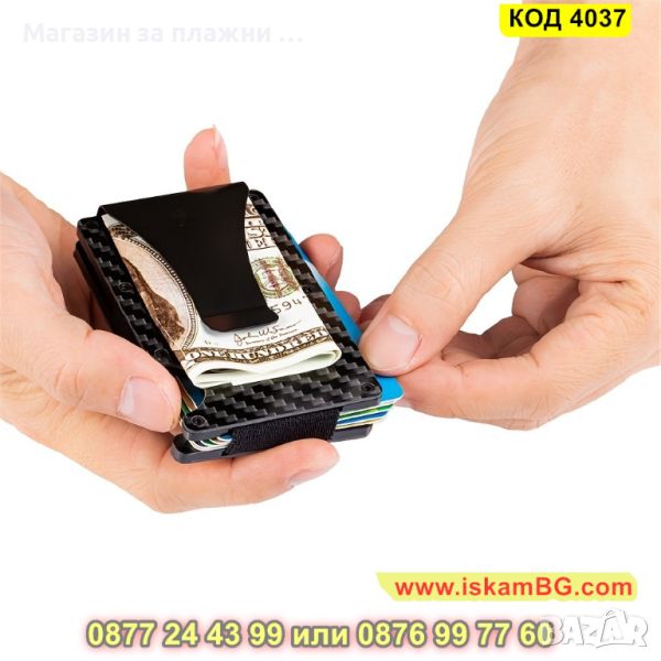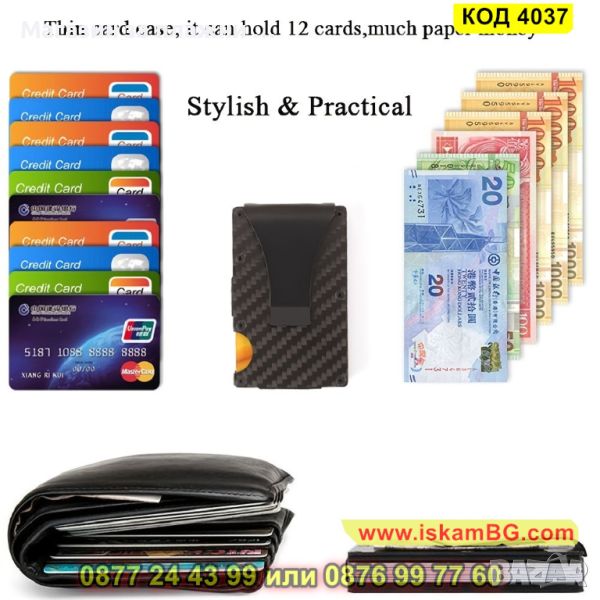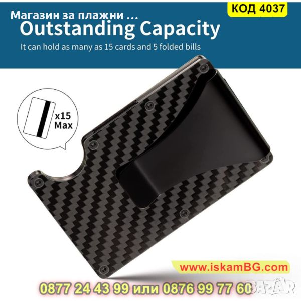 Карнановият картодържател притежава дизайн с блокиране на RFID, благодарение на който ще имате защита и ще предпазите своята личната информация и кредитните Ви карти от сканиращите устройства на крадците. По този начин се гарантира пълната безопасност на личните Ви вещи. Картодържателят е стилен, семпъл, с по-тънък дизайн, което го прави и по-лесен за носене от традиционния портфейл. Предлага се в черен цвят и побира до 12 кредитни карти в себе си. Перфектен подарък за близки и роднини.