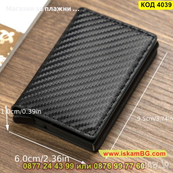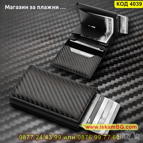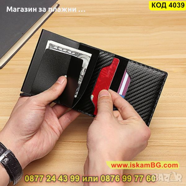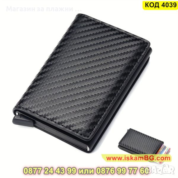 Мъжки карбонов портфейл с RFID защита в черен цвят - КОД 4039