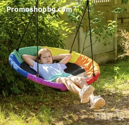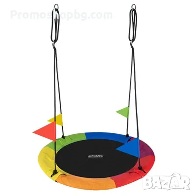 ГОЛЯМА СЕДАЛКА - люлката има широка, кръгла седалка, изработена от стоманена рамка, защитена с EPE пяна, вътре в която има здрава PP мрежа. Изработена е от 600D Оксфорд плат , което гарантира безопасна игра. Товароносимостта е до 150 kg и е възможна благодарение на плетените въжета с дебелина 10 mm. Това гарантира безопасност и позволява дори на възрастните да използват люлката, като я прави идеално решение за цялото семейство.