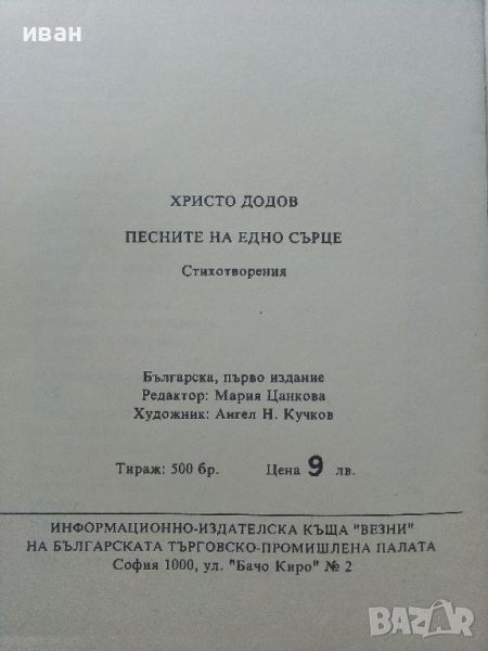 Песните на едно сърце - Христо Додов - 1992г. , снимка 1 - Българска литература - 45209293 Песните на едно сърце - Христо Додов - 1992г. , снимка 2 - Българска литература - 45209293 Песните на едно сърце - Христо Додов - 1992г. , снимка 3 - Българска литература - 45209293 Песните на едно сърце - Христо Додов - 1992г. , снимка 4 - Българска литература - 45209293 Песните на едно сърце - Христо Додов - 1992г. , снимка 5 - Българска литература - 45209293 Песните на едно сърце - Христо Додов - 1992г. , снимка 6 - Българска литература - 45209293 Песните на едно сърце - Христо Додов - 1992г. , снимка 7 - Българска литература - 45209293 Песните на едно сърце - Христо Додов - 1992г. , снимка 8 - Българска литература - 45209293 Песните на едно сърце - Христо Додов - 1992г. , снимка 9 - Българска литература - 45209293 Песните на едно сърце - Христо Додов - 1992г. , снимка 10 - Българска литература - 45209293 1/10