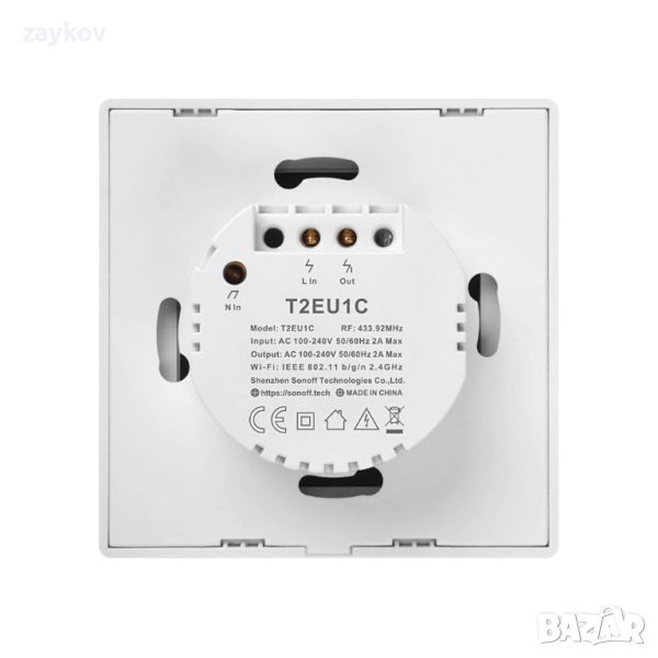 SONOFF T2EU1C-TX Смарт превключвател за осветление Стъклен панел Бял 1 бутон