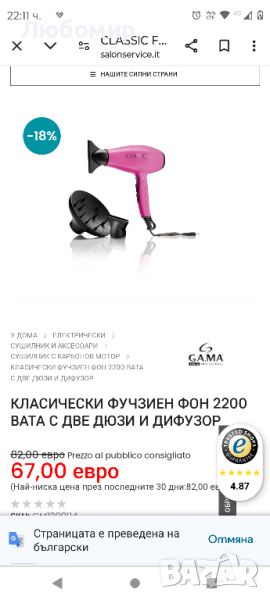 Класически сешоар тип фуксия с мощност 2200 вата