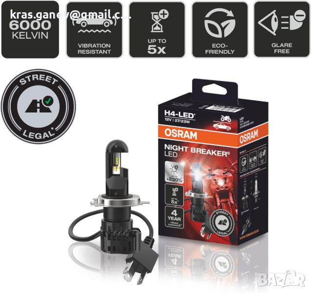 OSRAM Night Breaker H4 LED за мотоциклети, до 230% повече яркост, снимка 1 - Части - 45211296 OSRAM Night Breaker H4 LED за мотоциклети, до 230% повече яркост, снимка 2 - Части - 45211296 OSRAM Night Breaker H4 LED за мотоциклети, до 230% повече яркост, снимка 3 - Части - 45211296 OSRAM Night Breaker H4 LED за мотоциклети, до 230% повече яркост, снимка 4 - Части - 45211296 OSRAM Night Breaker H4 LED за мотоциклети, до 230% повече яркост, снимка 5 - Части - 45211296 OSRAM Night Breaker H4 LED за мотоциклети, до 230% повече яркост, снимка 6 - Части - 45211296 1/6
