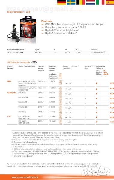 OSRAM Night Breaker H4 LED за мотоциклети, до 230% повече яркост → Обява 45211296