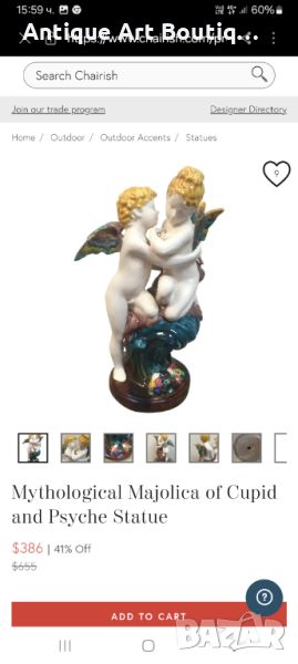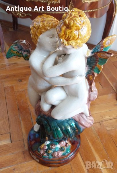 Старинна статуетка/композиция с размери 55 на 35см-изработка порцелан.Има забалежки по крилата!