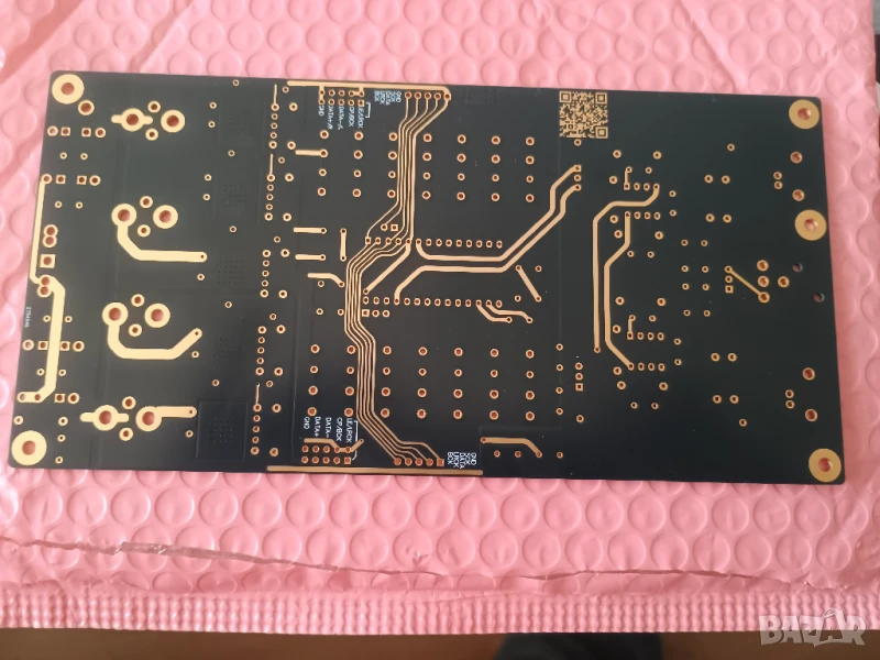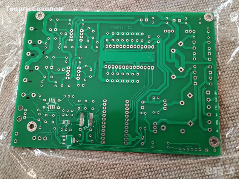 Много качествена солдер маска, платката е тайванска и е с много дебели писти 0.08мм, сериозно организирани 4 захранвания, индикации, правил съм няколко проекта с нея и свири адски добре. Вижте внимателно първа снимка, там съм показал колко дебели са пистите. Давам и списък с нужните IC, макар, че всички компоненти са си надписани на платката. Захранващи напрежения минимум AC~8-0-8V\15-0-15V като същите могат да бъдат увеличени безпроблемно до макс. АС~12-0-12\27-0-27, тъй-като стабилизациите си ги регулират сами в тези диапазони. Двете двойки захранвания са за Цифровата\Аналогова схеми отделно, с цел обезшумяване на схемите.