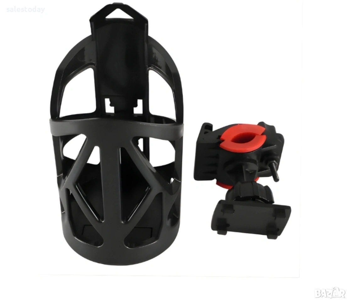 Практична и стабилна поставка за бутилка, предназначена за монтаж върху велосипед, мотор или електрическа тротинетка. Осигурява удобен достъп до напитката по време на движение, като същевременно държи шишето здраво фиксирано дори при неравен терен.