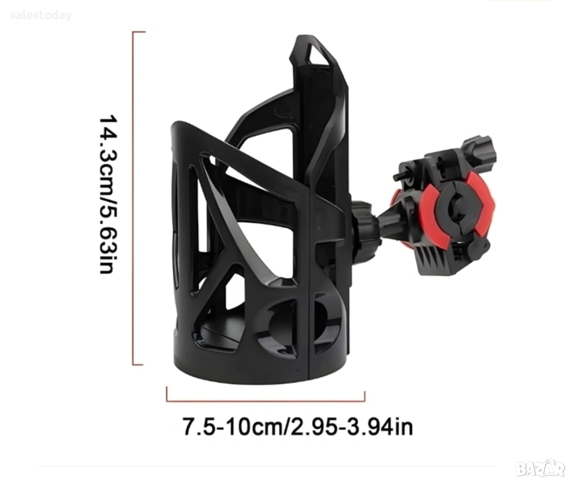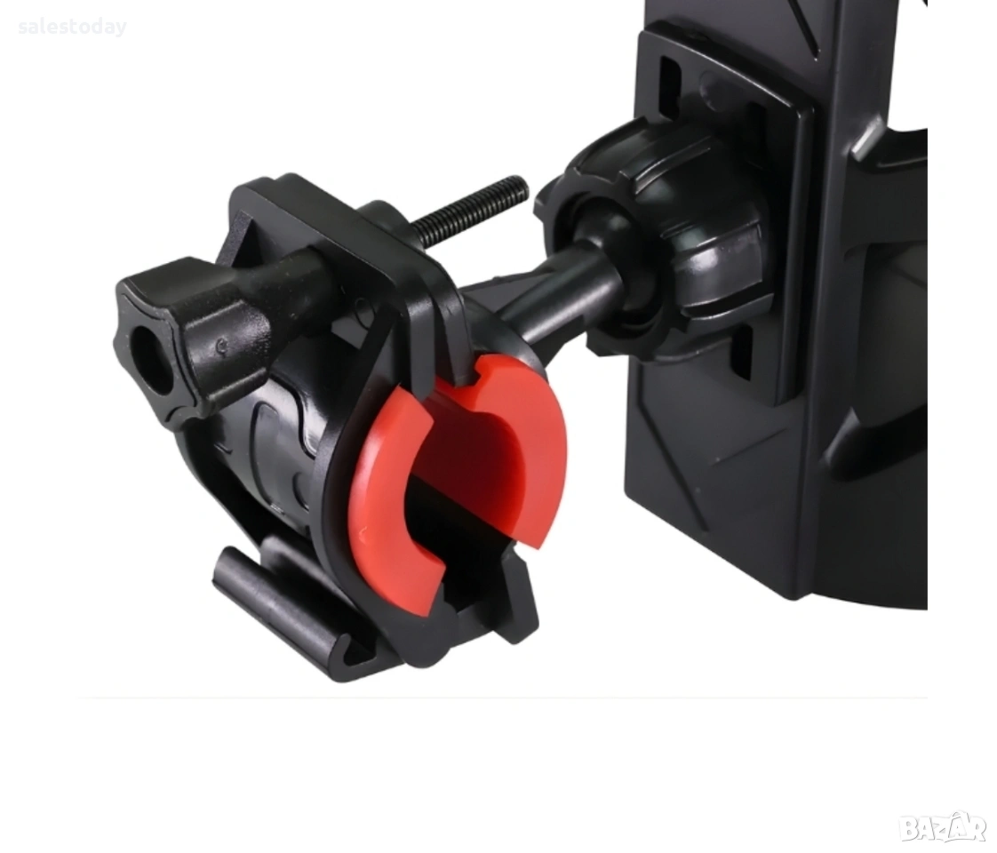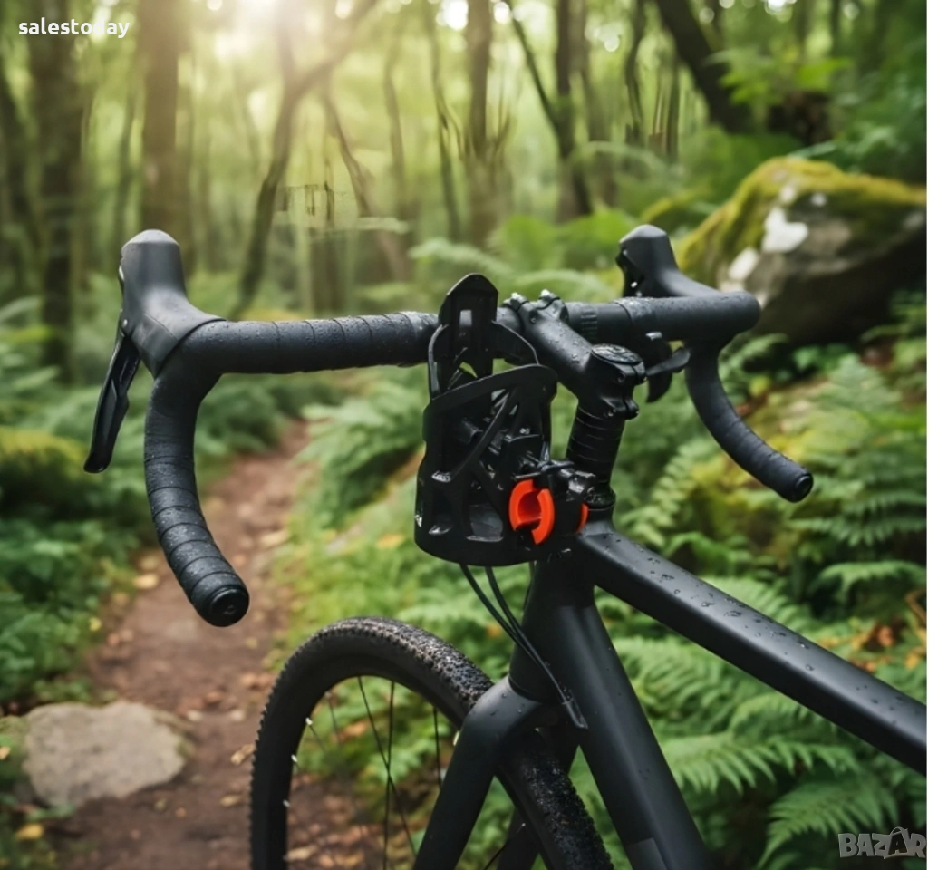 Моделът разполага с регулируем захват, позволяващ използване на бутилки с различен диаметър. Закрепването става чрез стабилна скоба с гумени вложки, които предпазват рамката от надраскване и осигуряват сигурно фиксиране.