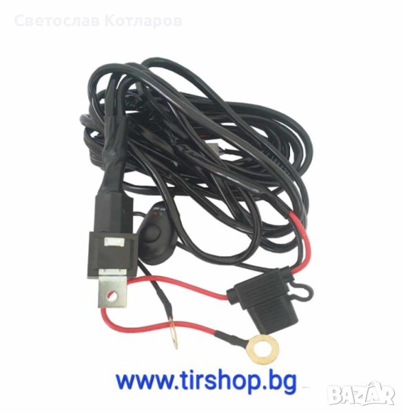 Комплект окабеляване за лед барове ,Фарове и други ,с кабелни обувки ,предпазител ,реле и ключ - прекъсвач с led индикация за включени и изключени светлини.