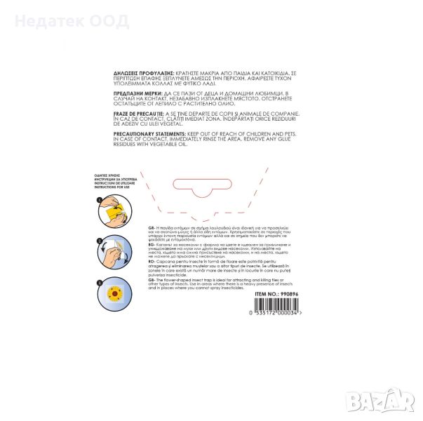 Капанът за насекоми с форма на цвете е идеален за привличане и убиване на мухи или други видове насекоми. Използвайте в райони, където има силно присъствие на насекоми, но също и на места, където не можете да пръскате с инсектициди. Той е нетоксичен, самозалепващ се и издържа до 4 месеца.