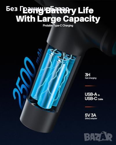 Нов Мощен Масажор Тих 60W Портативен до 35dB с 5 Накрайника