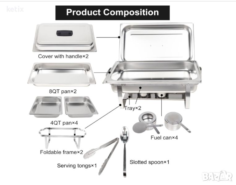 Комплектът за затопляне на храна 9L е подходящ не само за търговска употреба, но и за семейна употреба. Може да се използва за съхранение на много видове ястия като предястия, вечери, десерти, основни продукти, плодове и т.н. Идеален за бюфет, зала за закуска в хотел, брънч, кетъринг, семейно събиране, банкет, сватба, самообслужване и др.