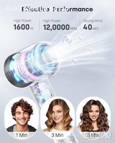 Мощен мотор 120,000 RPM: Бързо сушене за 1-5 минути.