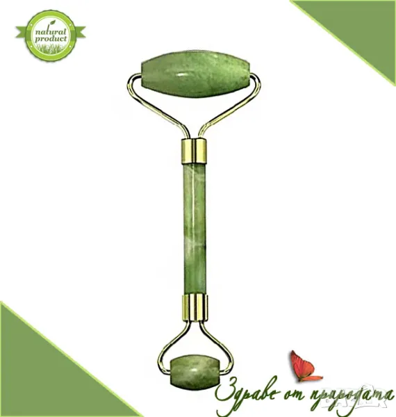• НЕФРИТЕН МАСАЖЕН РОЛЕР ЗА ЛИЦЕ, двоен