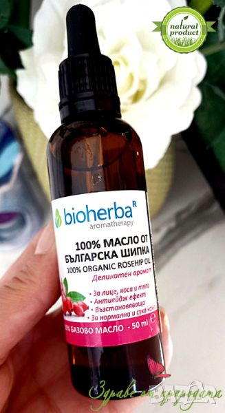 Качественото Био масло от българска шипка помага за изглаждането на фините и по-дълбоки бръчки, и предотвратява появата на нови; То подпомага заличаването на белези, петна, стрии; Прави кожата по-еластична и стегната, подобрява тена, подхранва и регенерира.