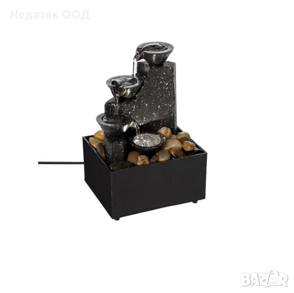 Настолен вътрешен фонтан, със стъпала и камъни, черен, 11x9x17 см