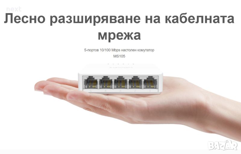 + Лесно разширяване на кабелната мрежа: С пет 10/100 Mbps Ethernet порта можете бързо да разширите вашата кабелна мрежа. MS105 е гъвкав и напълно съвместим с компютри, принтери, IP камери, смарт телевизори, игрални конзоли и др. Това го прави перфектен за дома, малкия офис, и дори спалнята.