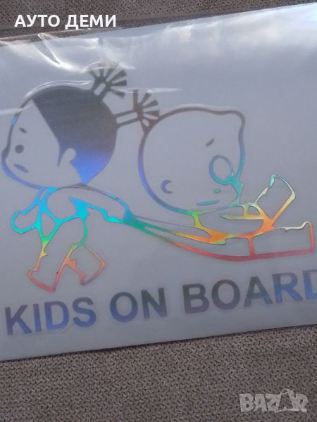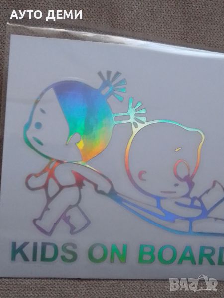 Светлоотразителен стикер лепенка Kids on board ( Деца в колата ) за кола автомобил джип ван бус