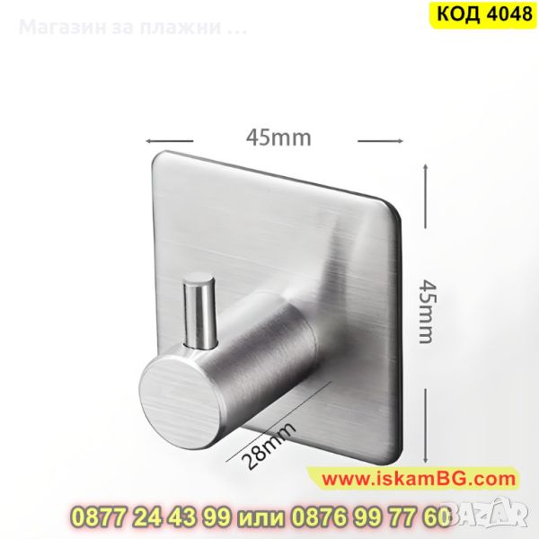 Самозалепваща се единична закачалка за баня от стомана в цвят инокс - КОД 4048
