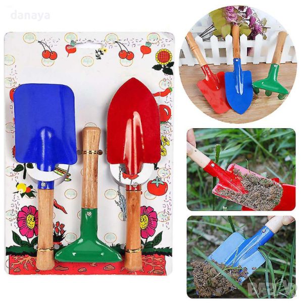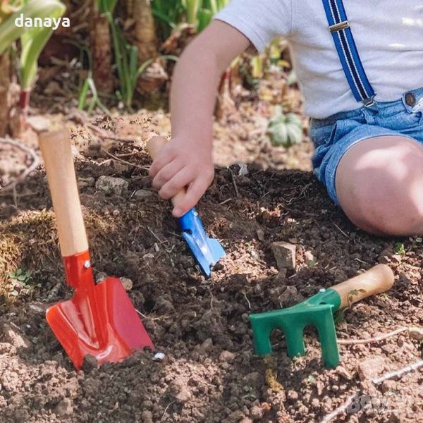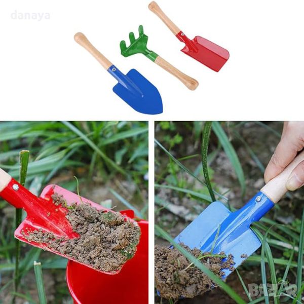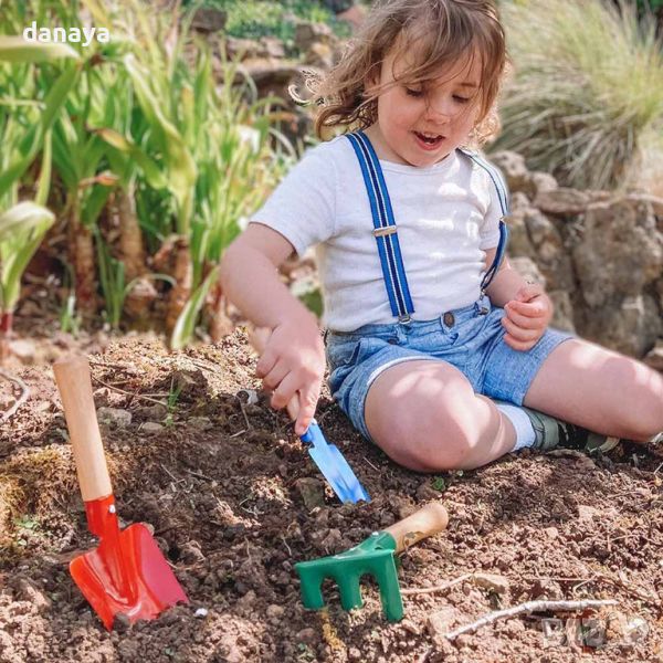 Забавен, безопасен и издръжлив сет от градински инструменти, прецизно изработени специално за малки ръце. Комплектът включва гребло, лопатка и мистрия, подходящи за забавление в градината с мама и татко. Инструментите се отличават със здравата си конструкция – дървена дръжка и метална работна част. Чудесен комплект, който ще помогне на децата да се научат да работят с градинските инструменти за нула време. Изработени са от висококачествени и безвредни материали.