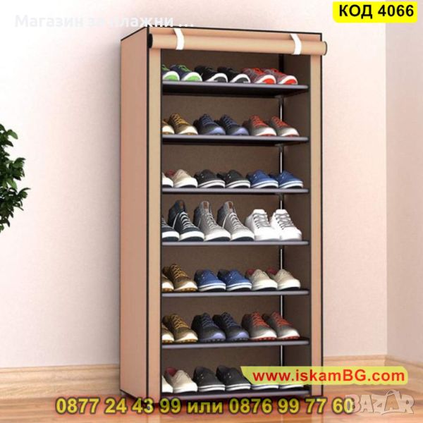 Стелаж за обувки с текстилно покривало на 7 реда - бежов - КОД 4066