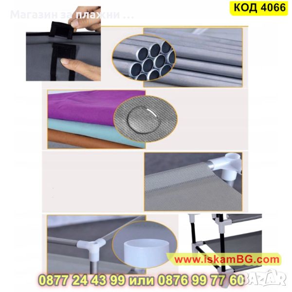 Този висококачествен шкаф за обувки удобно събира всичките ви обувки. Не трябва повече да се притеснявате къде да ги съхранявате в дома си. Висококачественото покривало от нетъкан плат има цип, който ще ви помогне да съхранявате обувките си скрити и ще ги пази от прах също така. Лесен е за почистване, не задържа вода и не се хлъзга. Текстилният шкаф има стабилна конструкция, заема малко място, лек и лесен е за пренасяне и ще се впише елегантно във вашия интериор.