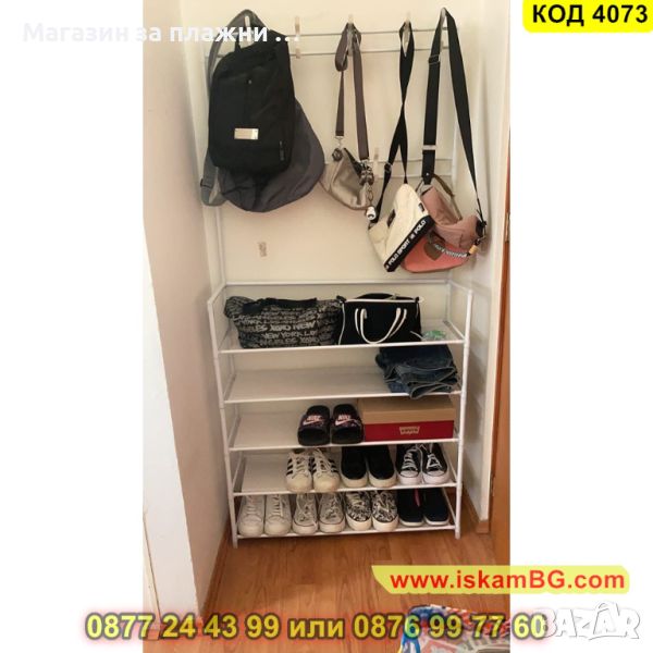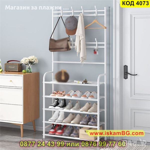 Мултифункционална етажерка, която може да се използва като стойка за обувки, закачалка за дрехи, шапки, обувки, чанти, чадъри и други.
