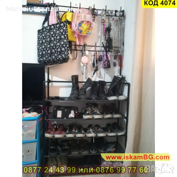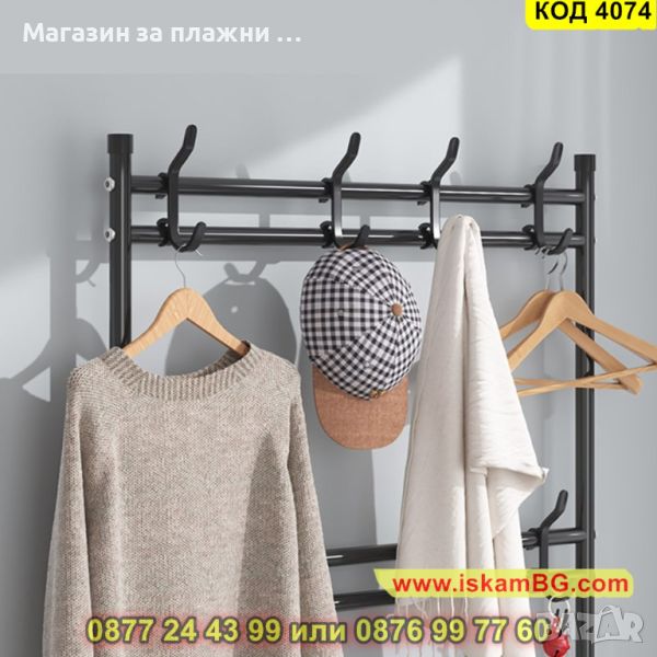 Мултифункционална етажерка, която може да се използва като стойка за обувки, закачалка за дрехи, шапки, обувки, чанти, чадъри и други.