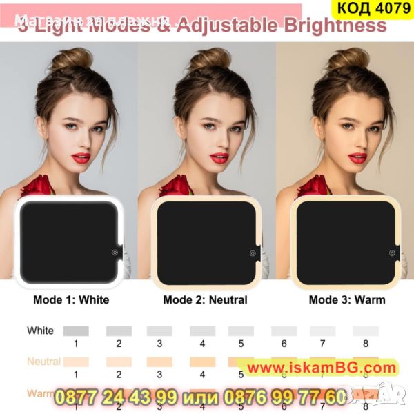 Куфарът за грим, който Ви представяме е един много красив и практичен аксесоар за всяка дама, която обича да се грижи за външния си вид и да подрежда своите гримове. Стилният куфар за грим притежава удобно LED огледало и предлага три режима на светене - топла, студена и неутрална светлина. За да изберете модел на светене е необходимо да натиснете продължително, за да намалите плавно яркостта на светлината или бързо да докоснете, за да превключите цветовата температура на светлината между студена, топла и естествена светлина. Освен това, вградената му батерия 2000mAh има капацитет на работа от едно зареждане да издържи работа една седмица. Разпределението на отделенията може да бъде разместено така както Вие желаете. Куфарчето се предлага в розов цвят и е перфектен аксесоар при пътувания или ежедневно ползване.