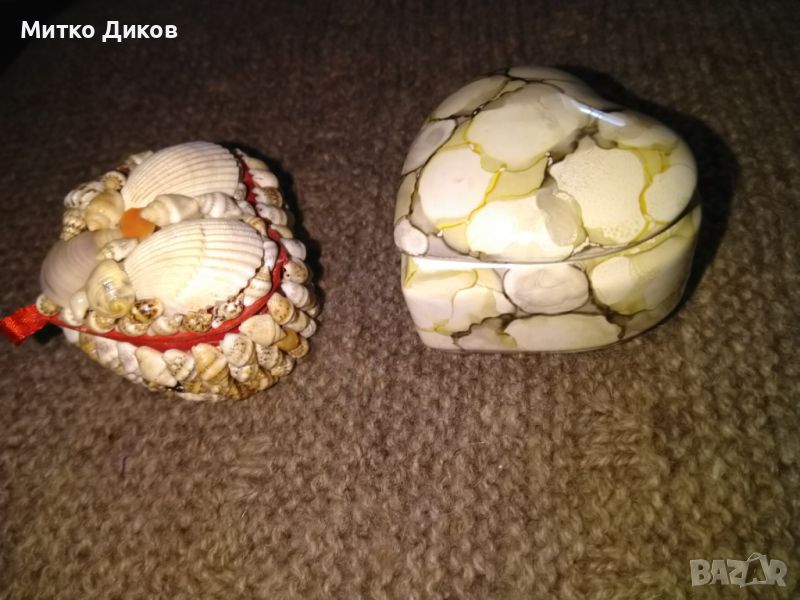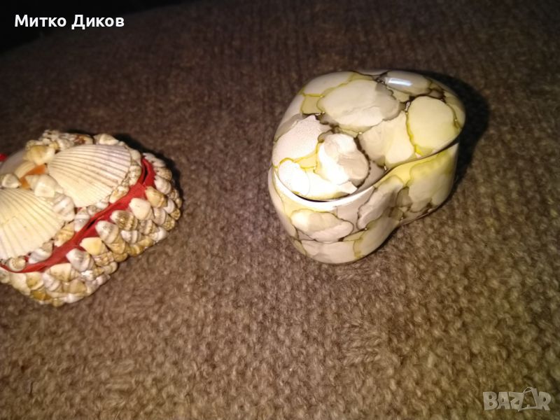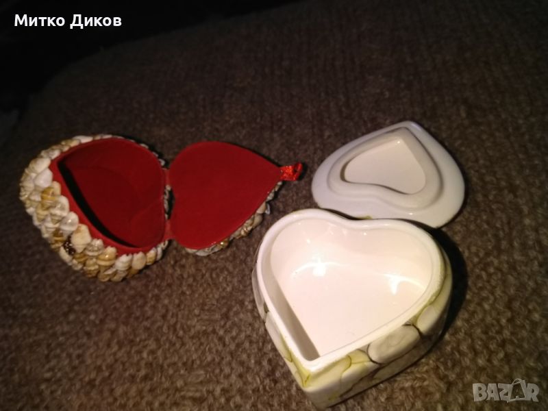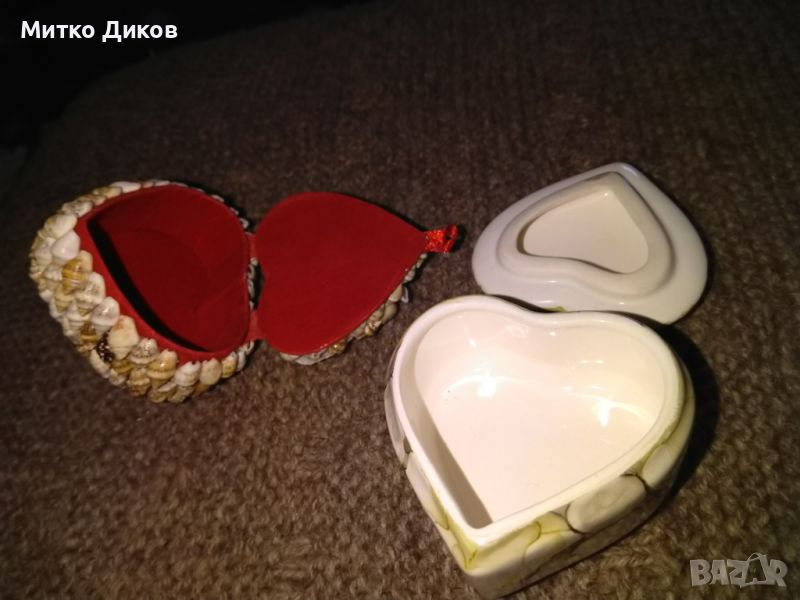 Кутия за бижута тип сърце порцеланова и от миди 45х60мм отлични → Обява 45222957