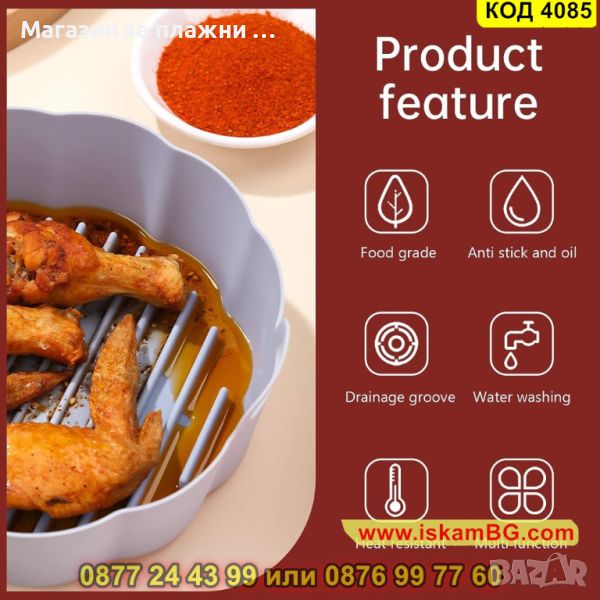 1 брой кръгла силиконова форма за еър фрайър 21.5 см.
