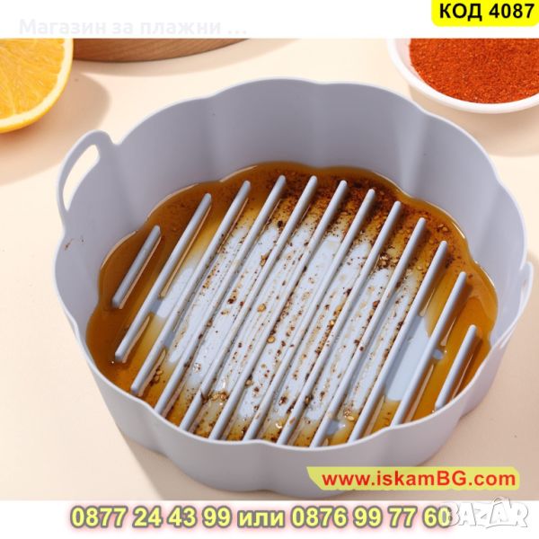 Малка силиконова форма за еър фрайър с диаметър 16см и странични дръжки - КОД 4087