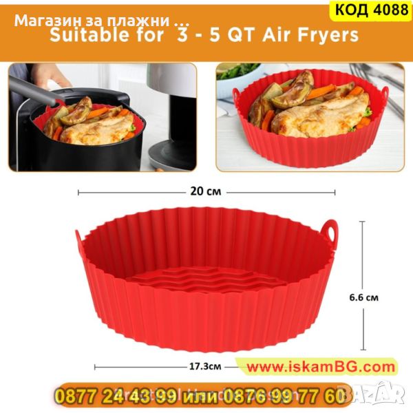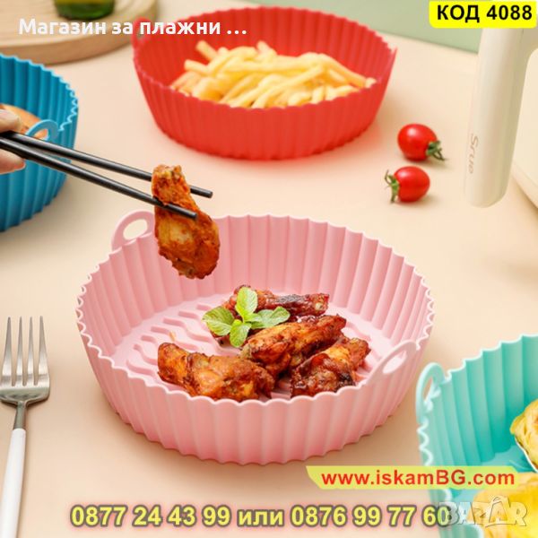 Кръгла силиконова тава за еър фрайър с диаметър Ф 20см – за многократна употреба - КОД 4088