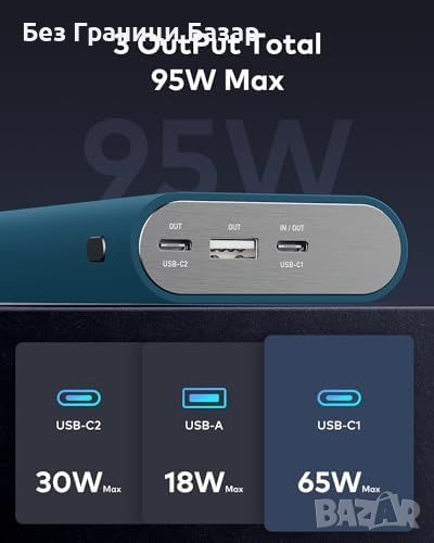Мощност 65W: Ефективно зареждане на лаптопи и смартфони.