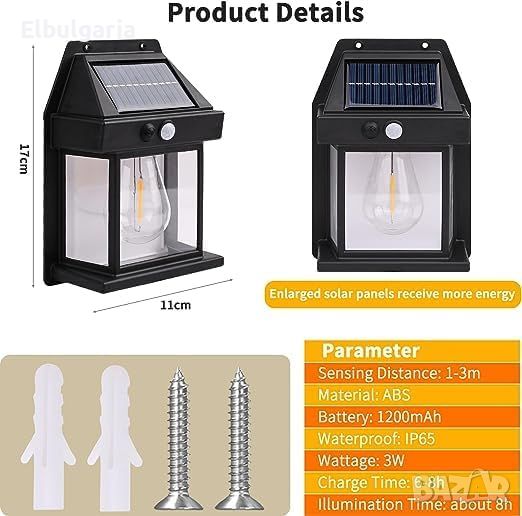 Соларна лампа за стена със сензор и 3 режима на светене, топла светлина, 3000k, 5V, 2945
