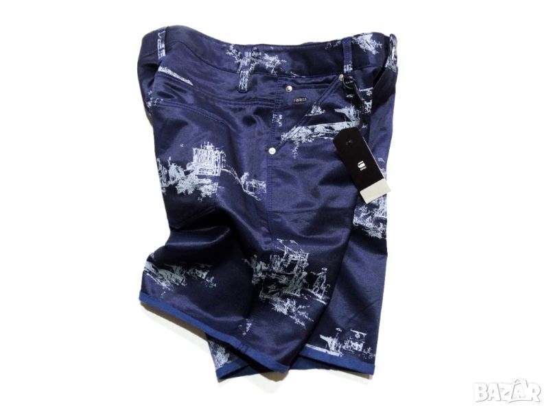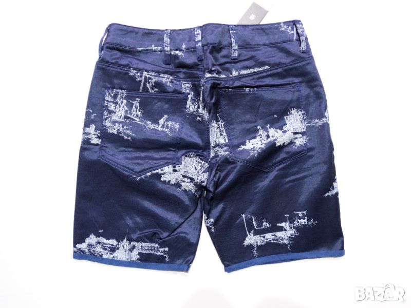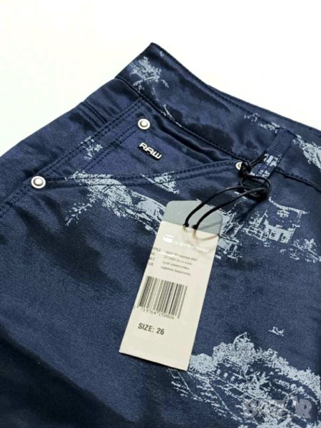 За София и лично предаване! Нови с етикети къси панталони G-star Raw 5622 3D Tapered Short WMN, размер по етикет W26. Тъмно син цвят с принт, талия едностранно 37,5см (обиколка на талията 75см), дълбочина отпред 25см, ханш едностранно 48см, шир. на бедро до четал едностранно 27см, дължина странично 43см, без еластичност 65% полиестер и 35% памук. ( летни )