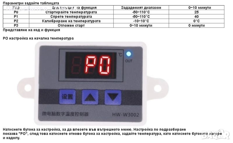 Натиснете бутона нагоре веднъж, за да се покаже температурата на стартиране, натиснете и задръжте бутона нагоре за около 3 секунди, номерът на температурата на стартиране ще мига и желаната стойност на температурата може да бъде зададена с бутоните нагоре и надолу бутони