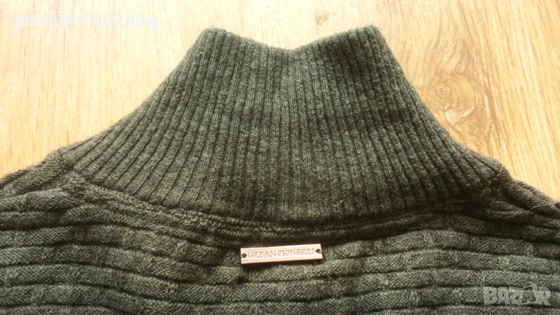 Марка: URBAN PIONEER 50% Merino Wool - блуза 50% Мерино вълна L 203-8 Размер: M - ширина под мишниците при нормално положение 57 см , разтяга се до 72 см , дължина 83 см заедно с яката , 75 см без яката.