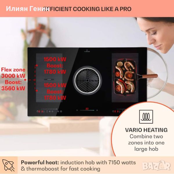 Обща мощност на индукционната печка: 7150 W