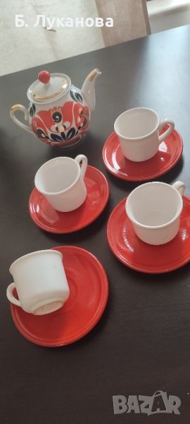 Четири чашки за кафе с чинийки, предлагат се и порцелановите фигурки.