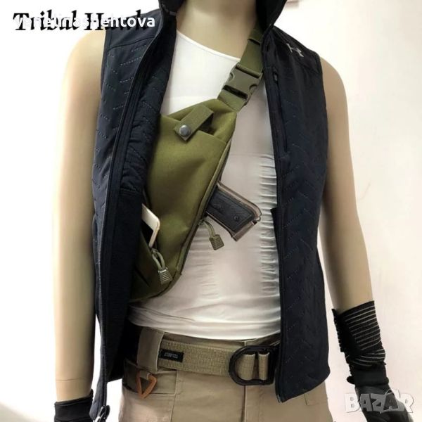 тактическа раница за скрито носене на оръжие. Подходяща за носене под яке, грейка, което предотвратява кражба на документи и пари. Раницата е за дясно рамо,боравене с дясна ръка, закопчалка за по-лесно поставяне, регулиране на презрамката,удобни ципове, за отваряне и с ръкавици.