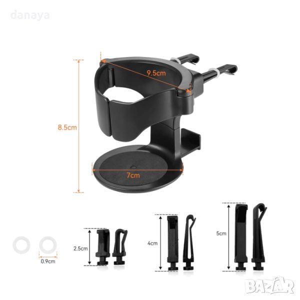 Пружинираща скоба вътре в поставката задържа чашата или бутилката и пази от преобръщане независимо от диаметъра и обема на бутилката с напитка.